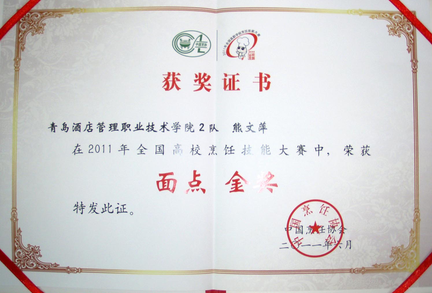本网讯 6月4—5日,2011年全国高职学校烹饪技能大赛在北京成功举办,来自全国高职院校的33个烹饪代表队和20个创业代表队共300多人,为赢得最后的锦标展开了激烈的角逐。我院常务副院长张志东带队、烹饪学院院长王振才任领队,组建两支参赛队伍参加了此次大赛。我院师生凭借扎实的专业技能和良好素质赢得大奖:荣获团体金奖、团体银奖各一枚;熊文萍同学的《果脯绣球海派酥》、侯鹏同学的《半岛风情六味碟》获得了面点、冷菜2枚单项金奖,胡兴军同学的《秋韵菊花里脊肉》、左孝晨同学的《琴屿香瓜蒸燕菜》、杜秀丽同学的《水晶澄粉闹虾趣》、吴玉川同学的《半岛印象六味碟》获得面点、热菜、冷菜4枚银奖,共夺得3金5银,在所有参赛院校中名列前茅。