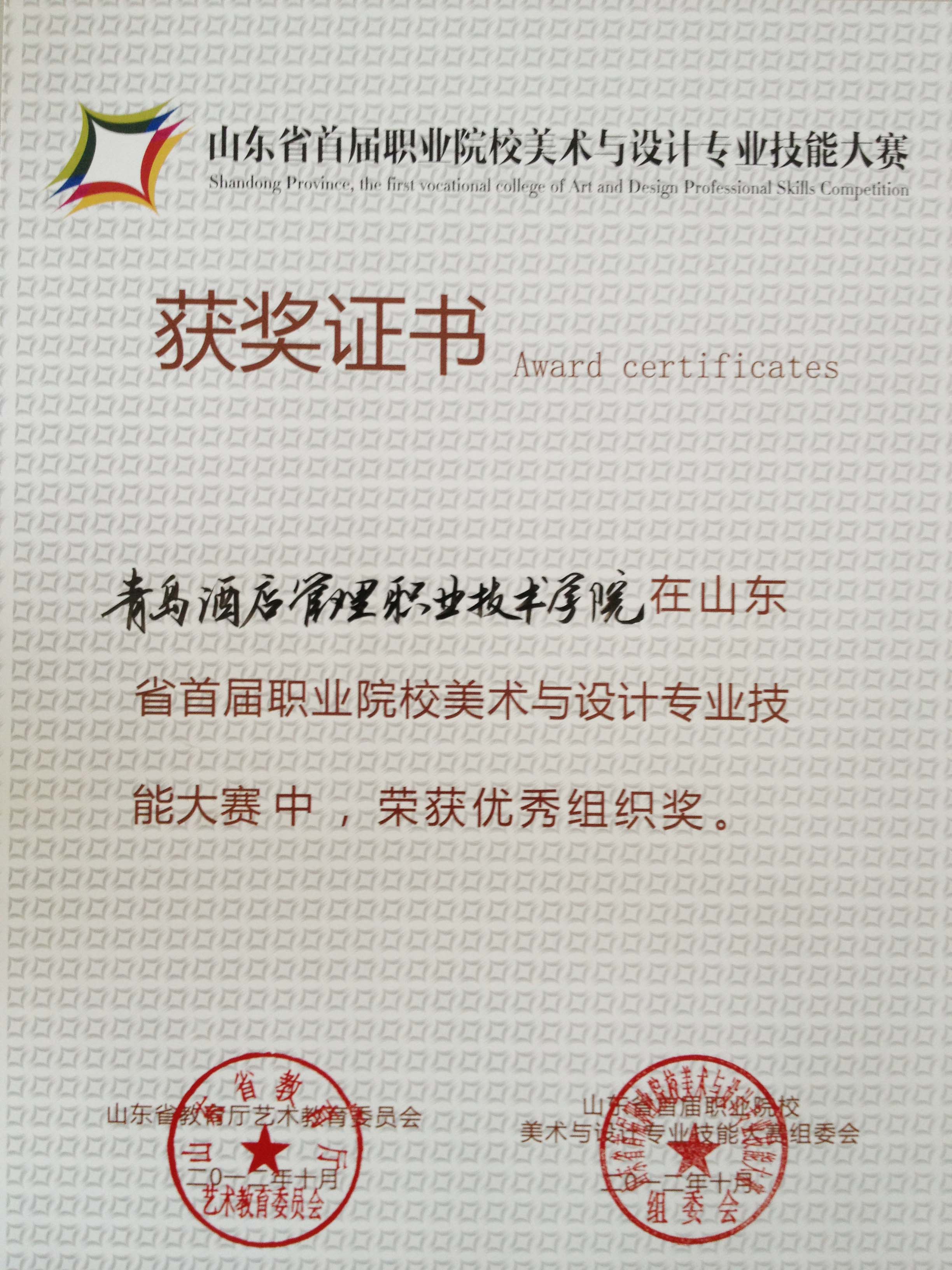 本次比赛由山东省教育厅艺术教育委员会主办、山东省工会管理干部学院承办、山东教育电视台协办。全省各职业院校都选送了优秀师生作品参赛。我院在教务处、艺术学院等部门的共同努力下,赛前对学生进行了积极的动员、选拔,积极组织师生参加了比赛。