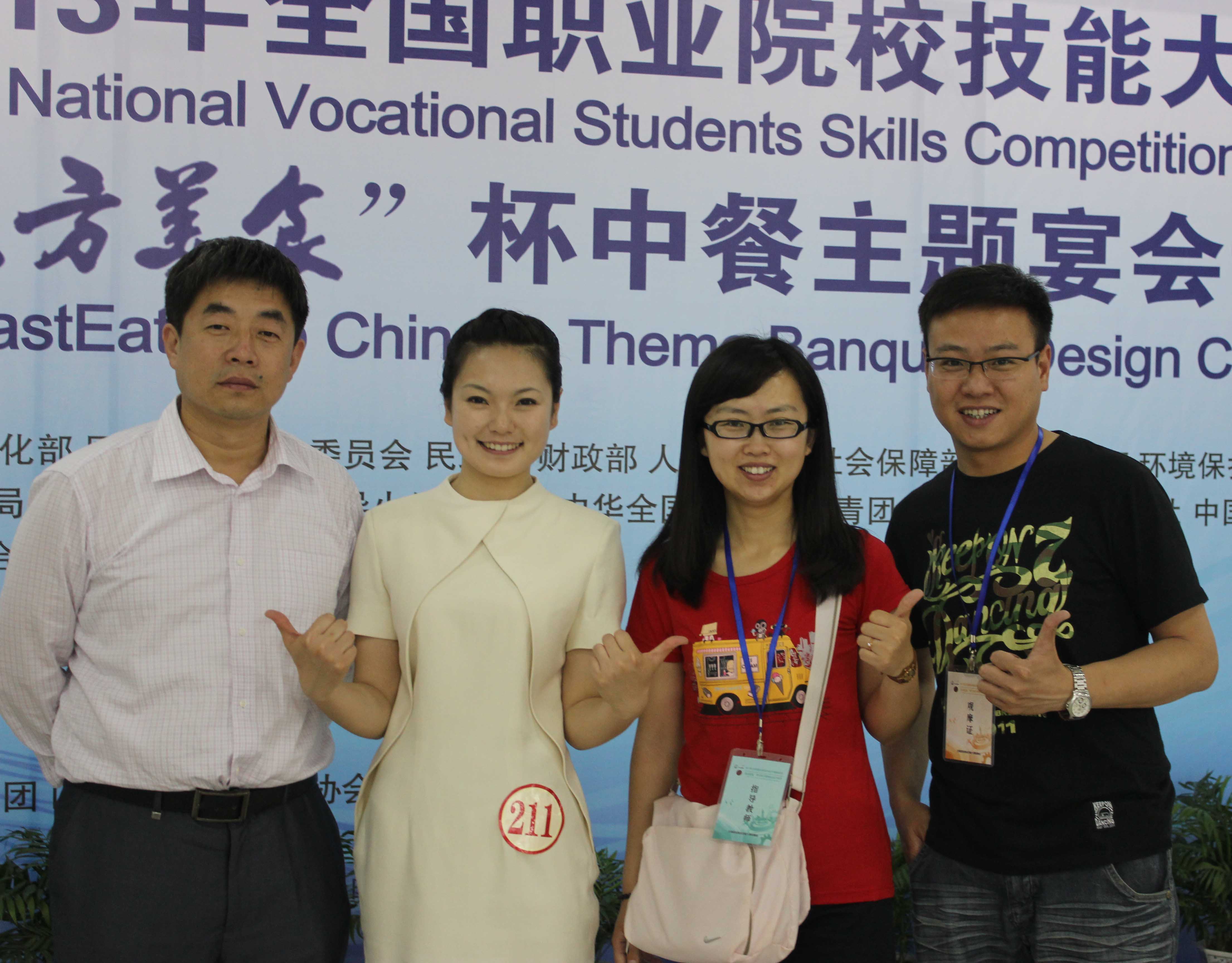 我院团队代表山东省参赛,由石增业担任领队,许文素、杜彦超作为指导和保障教师。经过理论知识测试、现场操作以及现场互评、外语水平测试、职业形象展示等四部分比赛,我院参赛选手许慧同学以良好的设计创新能力和精湛的专业操作技能斩获大赛一等奖,实现了个人的三连冠(许慧同学在2013山东省服务技能大赛(高职组)、2013全国旅游院校服务技能(饭店服务)大赛中也均获一等奖)。