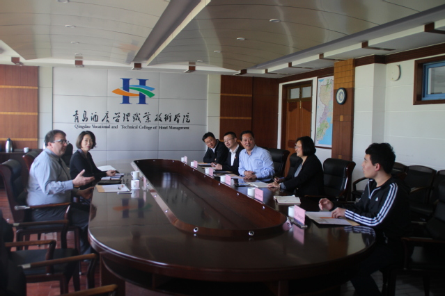 会谈中,于敏对老朋友的再次到访表示欢迎,他表示,学院非常重视与加拿大卡纳多学院间的合作,在之前专业共建、师生交流等基础上,学院将选派部分英语达标的专业教师赴加拿大进行专业教师海外培训,进一步打造学院的国际化师资队伍,为学院优质校建设打下坚实的基础。理查德对我院的热情接待表示感谢,他介绍了我院在加拿大留学的8名学生现状,1人将于今年6月顺利毕业,获得卡纳多学院烹饪管理专业的文凭证书,毕业后将留在加拿大继续工作,其他同学则全部通过了语言学习即将进入专业学习。理查德现场邀请2016年赴加留学生代表曲传广用英语汇报了自己近两年来的留学感想和经验。于敏对学生的留学成果表示了肯定,并表示将把这些经验与感想在学生间做好分享,起到示范效果。随后,双方就互建校中校事宜进行了深入探讨及实惠计划,两校将在烹饪专业合作的基础上,拓展更多的专业合作点,共同努力推动合作向纵深方向发展。