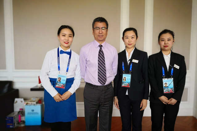“工作期间,我们见过好多校友,一开始不知道是咱们的人,熟悉之后才知道,原来,无论是主会场、还是会议中心、媒体中心,好多我们学院的师兄、学姐。他们真的很优秀,我们也都感到特别的骄傲。”15级酒店管理1班王雪说,“朋友圈里,那些青岛香格里拉、青岛鲁商凯悦、青岛富力艾美等酒店的总统合影,都有我们的人儿。我骄傲!!”