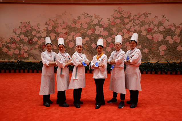 本网讯(党委宣传部 烹饪学院)6月9日至10日,2018上海合作组织成员国元首理事会第十八次会议青岛峰会在青岛市成功举行。我院64级优秀校友高炳义、90级优秀校友刘金波、烹饪大师王桂云和年轻教师姚金侠、王珊珊,主理6月9日习近平主席为欢迎上合组织青岛峰会各国元首举行的欢迎晚宴。