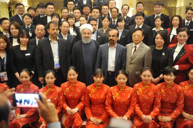 崔梦莹(第一排左二)、庄嘉芳(第一排右四)、齐高祥(第五排左六)与伊朗总统鲁哈尼合影
