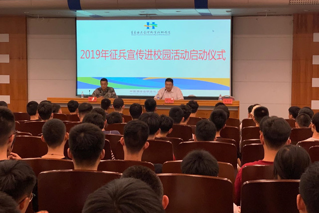 本网讯(学院武装部 赵旭)6月19日,学院武装部与青岛李沧区人武部联合在学院学术报告厅举行2019年征兵宣传进校园活动,李沧区人武部周玉伟科长、王军平干事出席活动,学院武装部部长胡滨主持启动仪式。