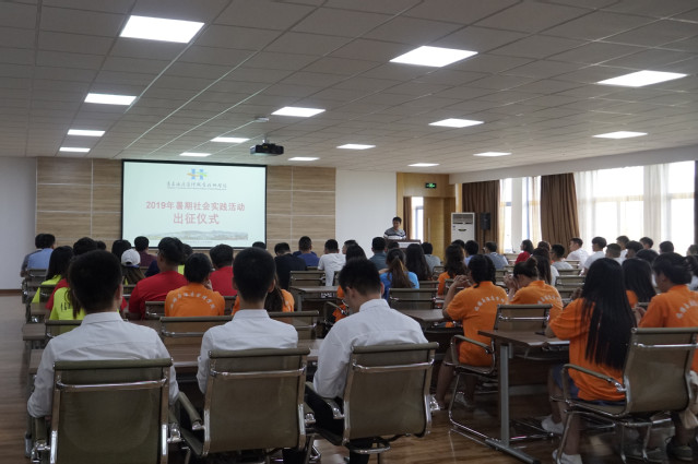 本网讯(团委 魏修鑫)7月9日下午,学院2019年大学生暑期社会实践出征仪式在行政楼四楼会议室举行。学院副院长刁洪斌出席活动并讲话,各二级学院党总支书记、团总支书记、各实践团队指导教师及队员代表参加出征仪式,仪式由团委书记李柯主持。