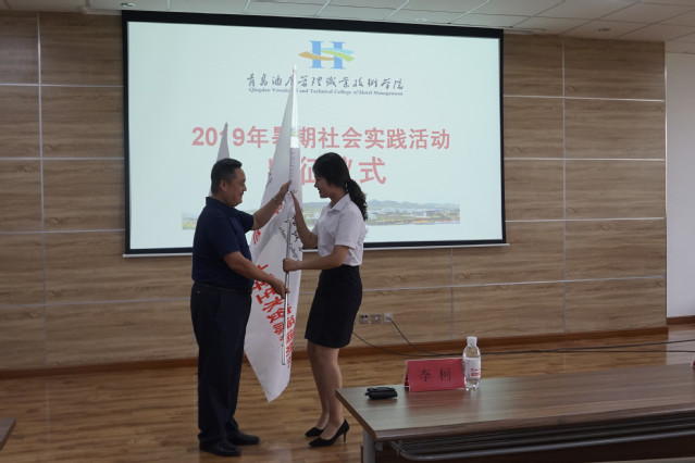 刁洪斌为社会实践团队授旗,对我院近年来暑期社会实践活动取得的成绩给予充分肯定。刁洪斌强调,实践是认识的源泉,群众是最好的老师,社会实践是广大青年学生求真理、悟道理、明事理的重要途径,同学们要以知促行、以行求知,养成注重实践、真抓实干的优良作风,进一步增强社会实践的针对性和实效性。希望同学们通过参与社会实践将奉献、责任和先进的理念传递给服务地的人们,在火热的青春中放飞人生梦想,在拼搏的青春中成就事业华章。