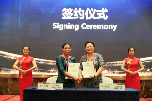 在23号下午进行的东盟国家院校洽谈会上,学院分别与泰国呵叻工商管理与旅游学院(Nakhonratchasima College of Business Administration and Tourism)、柬埔寨暹粒地区理工学院(Regional Polytechnic Institute Techo Sen Siem Reap)等院校进行了友好交流,双方就师生交流、文化体验等项目进行了深度交谈,并在现场签署合作备忘录,约定在之后的互访中实现具体合作项目的推进,进一步建立稳固的长期交流关系。这也是我院积极参与“一带一路”建设,促进中外人文交流,持续提升学院国际影响力的一种有益尝试。