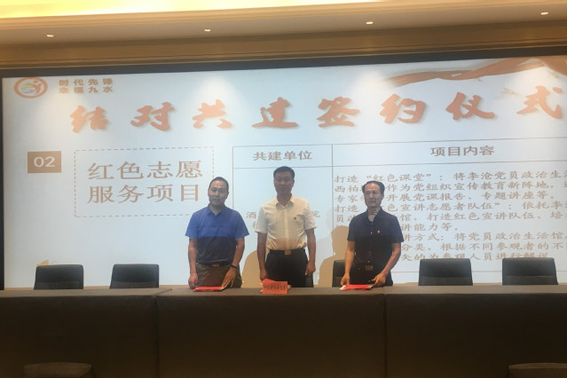 会上,李沧区对我院前期在开展党建联建共建,服务区域发展方面做出的贡献给予了充分肯定。九水街道介绍了近期党建共建工作成果,就如何将区域化党建工作进一步深化与共建单位进行了深入交流,在打造红色志愿者队伍、对口扶贫甘肃康县、开展文体活动和便民活动等方面,与12个单位达成共建意向,签订了区域化党建项目意向书。王建宝代表共建单位宣读共建倡议书,倡议共建单位要充分发挥各自的优势资源,推动区域范围内党组织共驻共建、共享共赢,并代表学院签订共建意向书。
