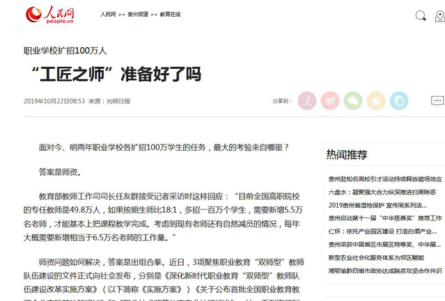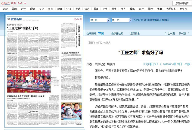 本网讯(党委宣传部)连日来,《光明日报》《工人日报》《人民政协报》《中国教育报》、人民网、新华网、山东教育电视台等媒体持续报道学院高水平双师队伍建设经验,齐鲁网、大众网、人民网和新华网各地方频道、中国教育新闻网给予转发报道。