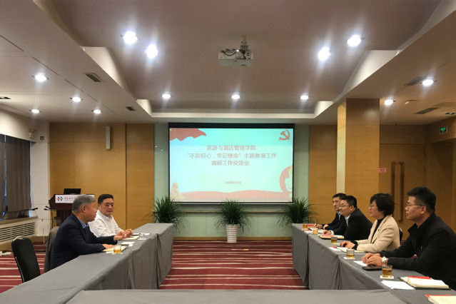 本网讯(旅游与酒店管理学院 王超)11月15日下午,党委书记李达参加旅游与酒店管理学院党总支“不忘初心、牢记使命”主题教育调研工作交流会,学院副院长刁洪斌参加座谈会。