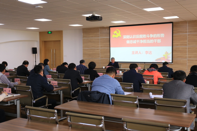本网讯(纪检监察处 白星宇)为进一步落实党风廉政建设主体责任,根据学院“不忘初心、牢记使命”主题教育安排,12月5日上午,学院党委书记李达为学院领导班子成员、部门负责人讲授廉政党课。学院党委委员、纪委书记姜玲玲主持。