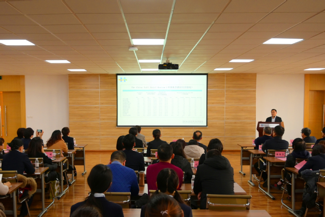 本网讯(旅游与酒店管理学院 尹萍)1月3日,山东酒店业职业教育集团年会暨酒店业发展高峰论坛在我院召开。包括本科院校、高职院校、国际品牌酒店、餐饮企业等在内的68家职教集团成员单位的近100余位嘉宾莅临年会。会议由旅游与酒店管理学院副院长石媚山主持。