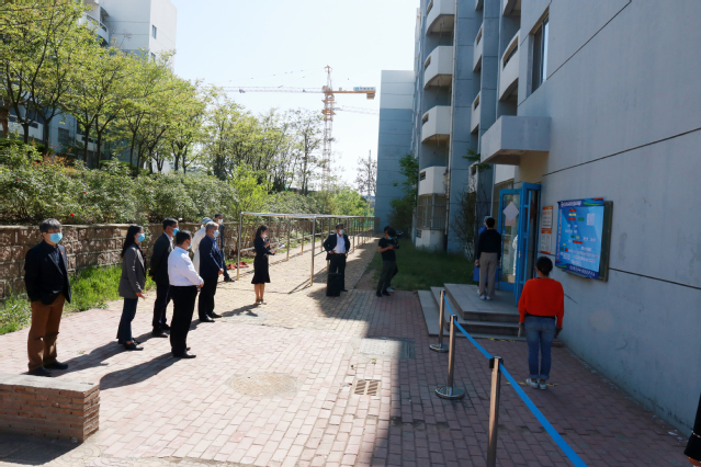 学生体温检测后进入宿舍