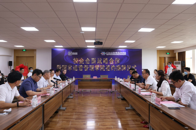 本网讯(工商管理学院 牛俊杰)6月23日,学院与顺丰速运集团有限公司校企全面战略合作暨顺丰运营管理学院签约揭牌仪式在行政四楼会议室举行。