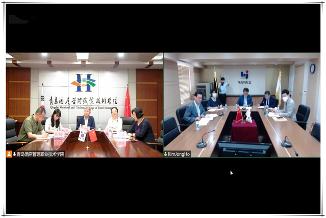 学院与韩国彗田大学自2008年建立姊妹院校关系以来,交流频繁、成果丰硕。疫情期间,双方共同应对新的变化,“停航不停交流、停课不停学习”,充分利用互联网+和教育信息化,将中国烹饪文化传输到韩国,共建中韩两国职业教育发展的命运共同体,待疫情过后,双方将进一步开展交流互访、学生交换,力争成为中韩两国职业教育的典范。