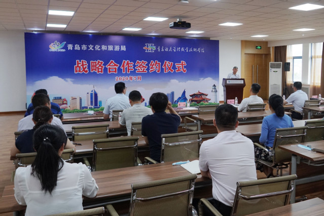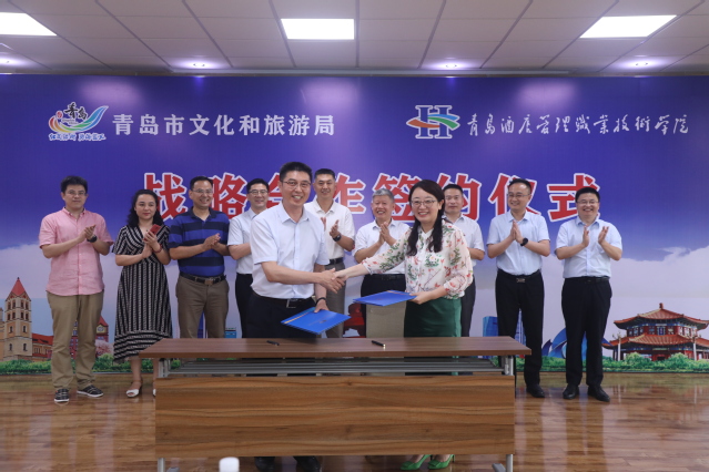 本网讯(文旅学院 朱丽男)7月15日下午,学院与青岛市文化和旅游局战略合作签约仪式在行政楼四楼会议室举行。