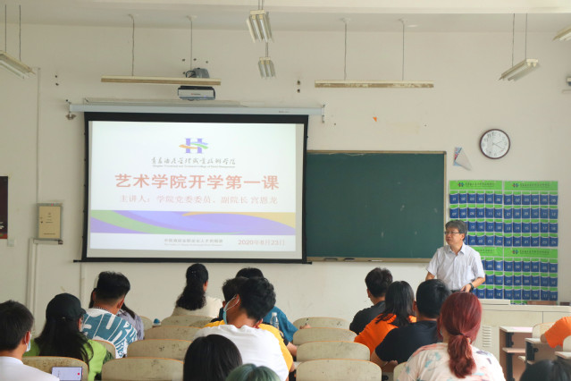 宫恩龙以《风雨无阻向前进》为题,为返校学生讲授“开学第一课”,他向同学们介绍了学院守好“责任田”,护好“一院人”,全力打赢疫情防控阻击战的基本情况,引导同学们要做坚定的爱国者、有良心的感恩者、健康的守护者和规则的遵守者。艺术学院院长朱广丽对新学期艺术学院的课程设置、专业发展向同学们做了介绍。