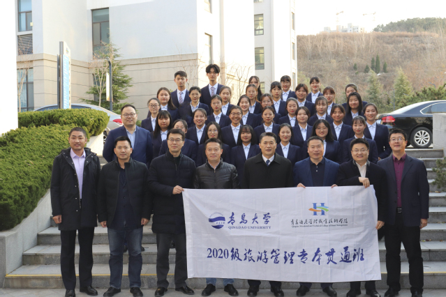 青岛大学旅游与地理科学学院副院长耿庆汇教授、副院长张言庆教授,文旅学院副院长石媚山等相关人员以及2020级旅游管理专本贯通班的35位同学参加以上活动。