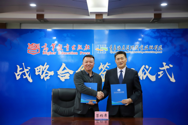 姜玉鹏和叶波代表合作双方签订了《战略合作框架协议》。根据双方合作协议,未来三年,学院将与高等教育出版社在专业(群)教学资源库、优质数字资源、教材建设、师资队伍等方面开展合作。