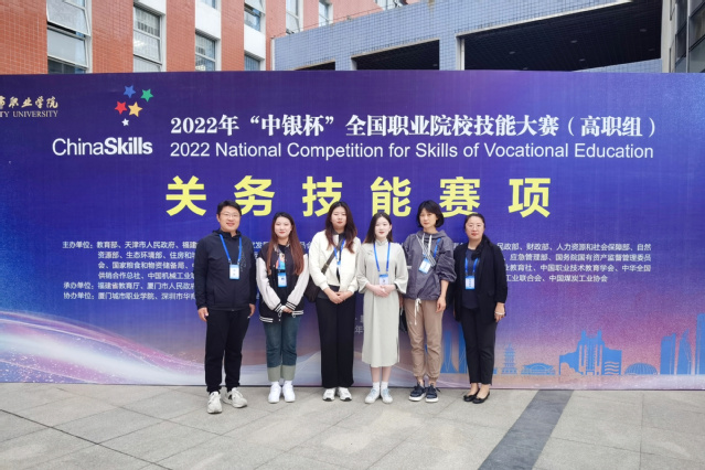 本网讯(工商管理学院 徐豪杰)11月7-8日,2022年全国职业院校技能大赛(高职组)“关务技能”赛项在厦门城市职业学院举行,共有来自全国各省(市)、自治区的48支代表队入围国赛。学校2020级报关与国际货运专业于笑、曹欣瑜、傅媛同学组成的代表队获得三等奖。