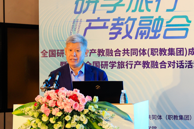 全国旅游职业教育教学指导委员会副主任委员王昆欣受文化和旅游部科技教育司委托,对全国研学旅行产教融合共同体的成立表示祝贺,肯定了学校在研学旅游教育方面作出的贡献。他表示,全国研学旅行产教融合共同体作为全国第一个研学行业的共同体,汇集了行业专家、院校、头部企业优势,全方位融汇研学旅行产教资源,必将在共促行业发展、共研共用标准、共通共享经验、共培共育人才等方面发挥作用,为研学旅行高质量发展注入新动能。