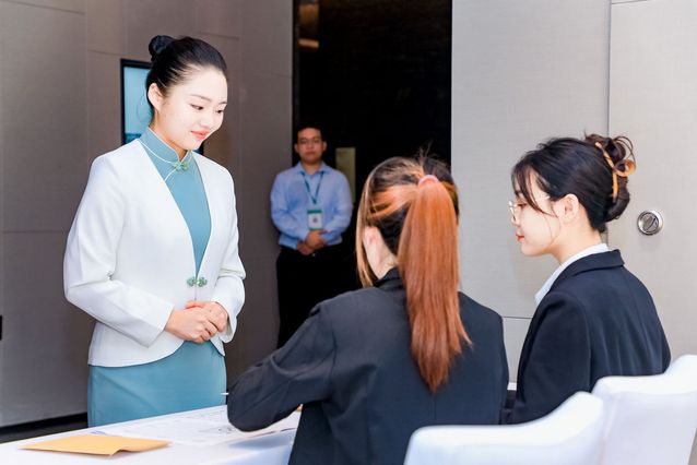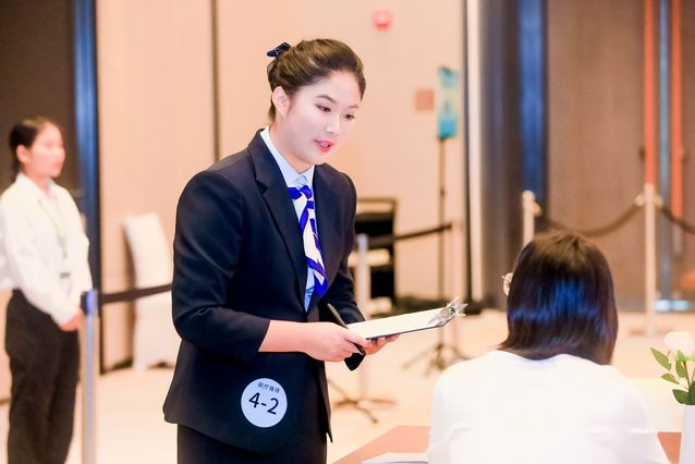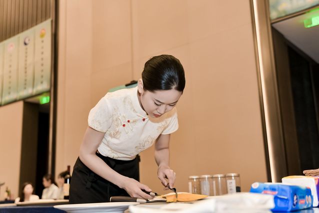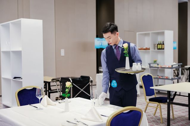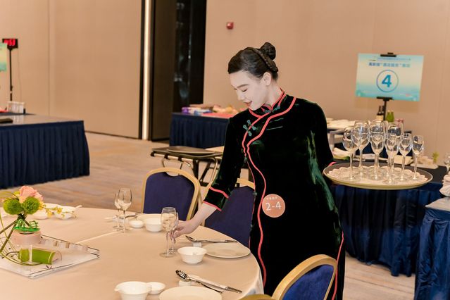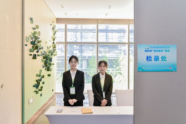 本网讯(党委宣传部 周晓莉)技能点亮青春梦想,奋斗书写时代荣光。9月5日,2023年国赛高职组“酒店服务”赛项比赛精彩上演,按照大赛日程安排,进行前厅接待、中餐服务和西餐服务三个环节的比赛。现场秩序井然,来自全国62所参赛院校的选手们正在用精彩绝伦的技能展示书写着绚丽多彩的青春故事。