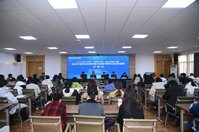 本网讯(文旅学院 周海磊)12月9日上午,由山东省人力资源和社会保障厅指导、山东文旅集团有限公司主办、我校承办的2023年山东省“技能兴鲁”职业技能大赛全省文旅系统研学旅行指导师职业技能竞赛在学校开赛。学校副校长张宗国主持开幕式。