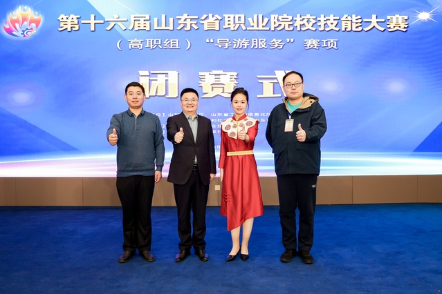 本次比赛由山东省教育厅、山东省工业和信息化厅、山东省人力资源和社会保障厅、山东省农业农村厅联合主办,共有来自全省各高职院校的42名选手参加比赛。本赛项为个人赛,包括现场导游词创作及讲解、自选景点导游讲解、导游知识测试、导游英语口语测试、才艺运用等五部分三环节。赛项规程按照国赛标准设定,旨在更贴近导游职业真实情境,全面考查选手的专业技能水平和综合素质。我校选手仪梦真表现突出,以扎实的导游知识、精彩的导游讲解、创意的才艺运用和流利的英语口语对话得到现场裁判专家的高度赞赏。
