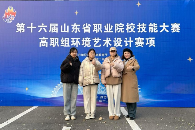 本网讯(艺术学院 董璟璟)12月8日-10日,在第十六届山东省职业院校技能大赛高职组新设赛项“环境艺术设计”赛项中,我校艺术学院周海燕、董璟璟老师指导的环境艺术设计专业邱飞浩、孙晓娜两名同学组成的参赛队伍荣获二等奖。
