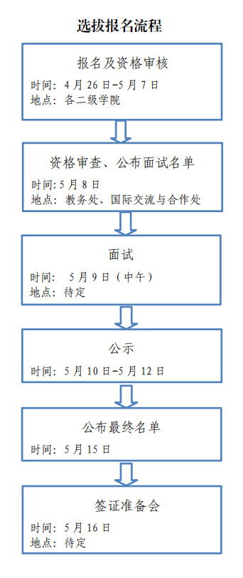 1.符合申请条件的学生需经家长同意后,本人提出申请,到二级学院外事联络员老师处报名;