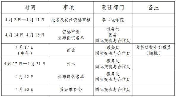 (三)学校选拔。学校组织考核和选拔,确定赴境外公派交换学生的选拔名单。