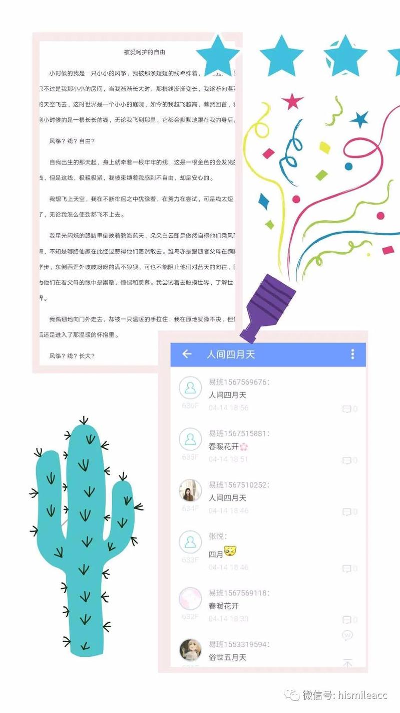 在开展征文活动的同时,易班平台推出两篇正能量推文:《人间四月天》《早安,愿你有一个美好的一天》。短时间内,同学们高度关注,积极参与留言,其中《人间四月天》浏览次数1650次,《早安,愿你有一个美好的一天》浏览1214次,同学们对易班平台的关注度有所提高,活动的参与度也逐渐上升。