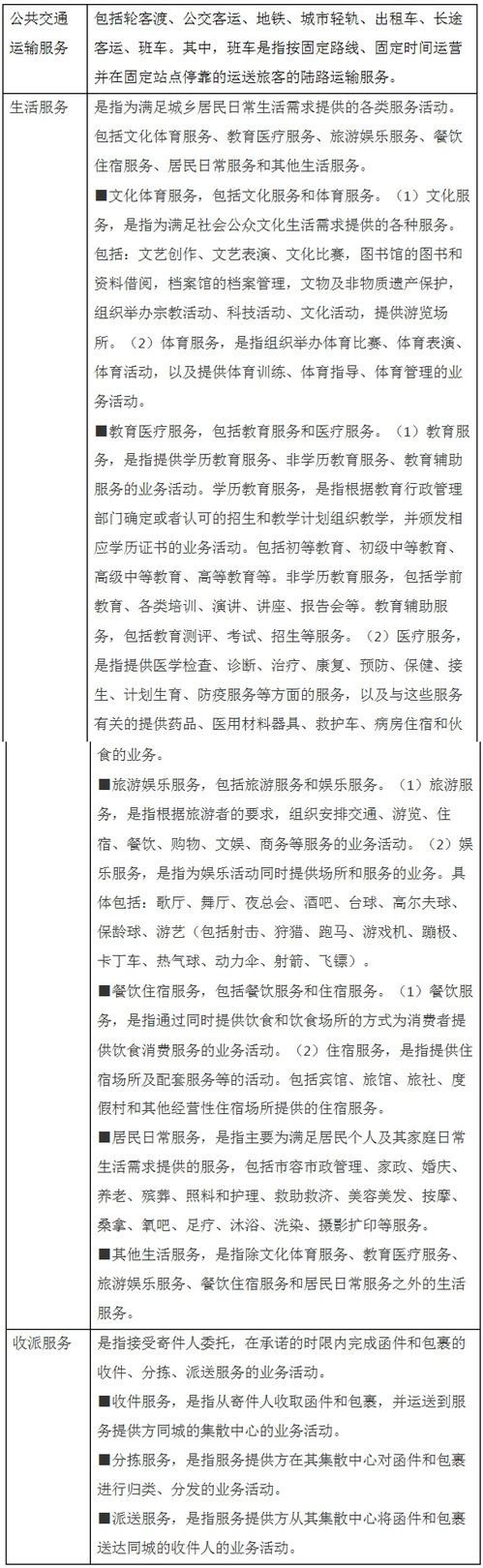 生活服务、快递收派服务的具体范围,按照《销售服务、无形资产、不动产注释》(财税〔2016〕36号印发)执行。