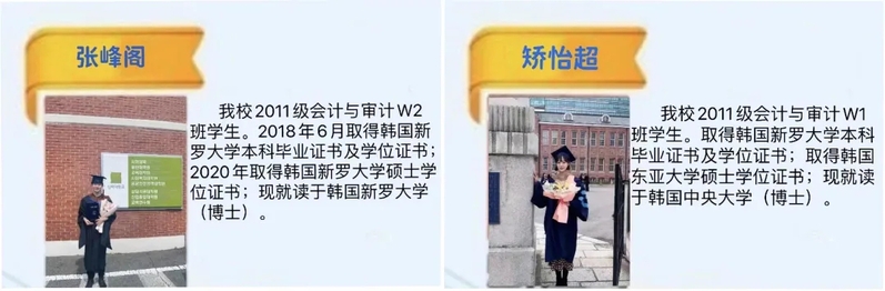 会计学院配备了专业的教师团队为有升学和出国留学需求的学生提供指导,学生通过自考、专升本、留学等多种方式升学人数逐年增多。近三年,共有600余名学生升入本科,30余名学生已考取硕士研究生;有60余名学生赴韩国、英国、美、台湾等国家和地区交换学习,其中有2名学生已考取博士研究生。