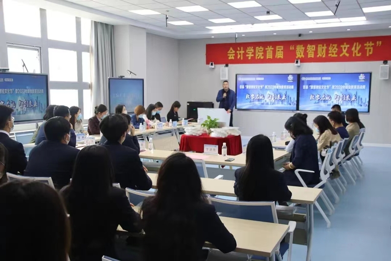 于进亮宣读《会计学院首届“数智财经文化节”活动实施方案》,并表示,“数智财经文化节”是进一步推动学院双高建设任务与提质培优综合改革,推进“三全育人”的有益探索。