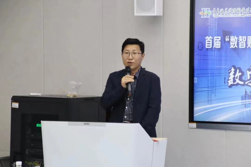 张宗国致开幕辞,他对本次活动给予了充分的肯定,也提出了殷切的期望。他表示,本届以“数字启航,智创未来”为主题的“数智财经文化节” 既是繁荣校园文化、培养学生职业素养和人文情怀的有力举措,也是推动财经专业数字化转型升级、开创智慧财经教育发展新局面的有益尝试。希望会计学院能够立足数字经济时代,与时俱进,主动求变,在更高层次上扎实推进财经职业教育高质量发展;希望同学们不负韶华,笃行不怠,在数字经济的浪潮里奋楫扬帆,逐浪前行。