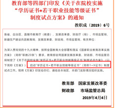 证书报考简介:根据《关于在院校实施“学历证书+若干职业技能等级证书”制度试点方案》的通知(教职成(2019)6号文件)的要求,“1+X”证书制度是职业教育改革的利器和手段,初衷是鼓励学生在获得学历证书的同时,积极取得所学专业的职业技能等级证书,提高人才培养质量。该证书是大数据时代背景下业财税融合云上技能的全新体验,能实现训、练、考三位一体,满足教学、实训和考证的需要。 | |