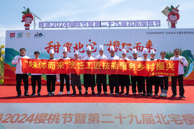 党员教师积极参与乡村振兴、产业数字化转型等国家重大战略,结合餐饮产业发展特点、烹饪行业前景方向,组织“味你而来·烹饪工匠技能服务队”以崂山区北宅特色食材宴席开发为契机,开发“状元樱桃宴”,将进士文化与区域民俗文化、饮食文化相融合,把“进士及第”“状元戴冠”等20余道文化菜品普及到近百家农家宴,研发数智化菜品200余道,为数字厨电产业提供技术支持。通过服务国家重大战略,锻造自身新质教学能力,将“国家大事”细化为“家家己事”,身正为范以资青年学生明德笃行,典型工作案例《打造特色党建品牌“一融双高”共生共长》被《大众日报》报道。
