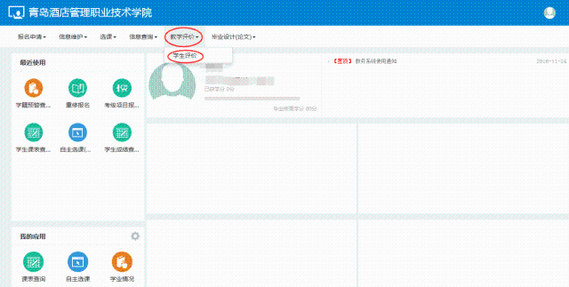 2.进入教务管理系统页面,选择“教学质量评价”。